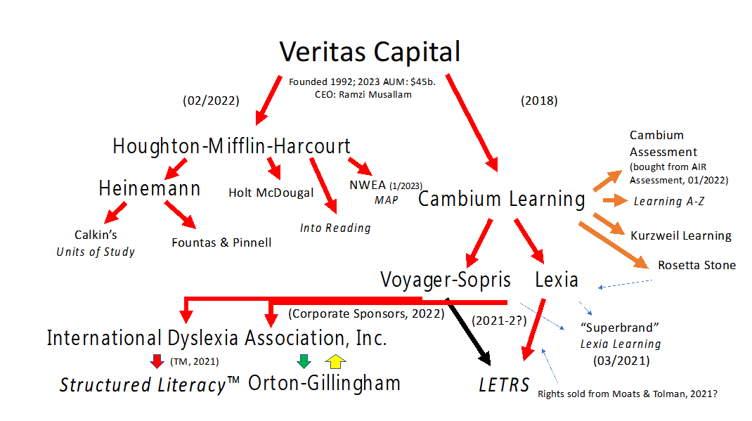 The domination of the big money is a well-documented fact. George Hruby’s 2023 diagram of Veritas Capital published in Journal of Reading Recovery entitled, “The science of Readingpolitik: A commentary,” provides the evidence that decisions about how young children are taught to read in U.S. public schools are dominated by market forces, and that hedge funds and private equity firms now own the educational publishing companies that produce the reading programs for huge profits.